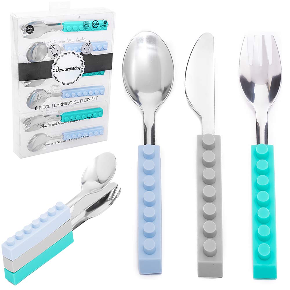 Toddler Silverware Great Lunchbox Utensils- UpwardBaby Original Stainless Steel Interlocking 6 Piece Set - Self Feeding Silverware Flatware for Kids