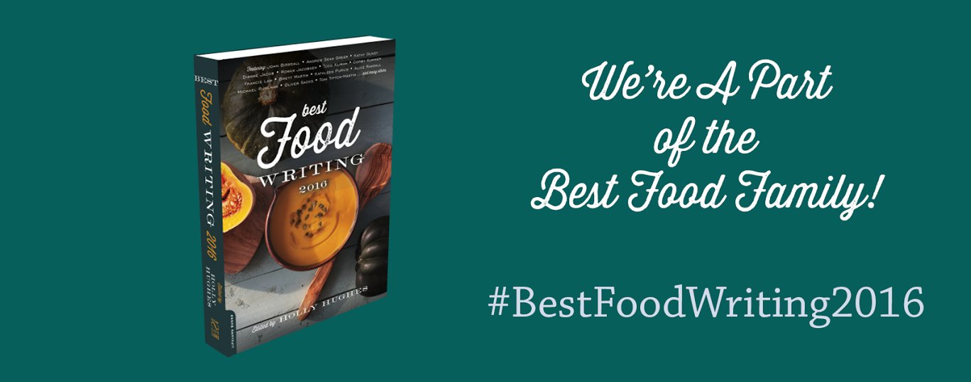 Best Food Writing 2016 | FoodFlakes.com The annual Best Food Writing (published since 2000) is a collection of forty-eight short pieces all focusing on food, cooking, and drinks, all by different food writers. Holly Hughes has edited these and compiled the stories into eight varying categories such as "Down the Hatch," "The Family Table," and "Life, on a Plate."